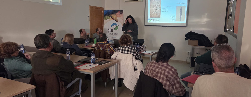 La primera jornada, celebrada en el Vivero de Empresas de Torrijos, estuvo dedicada a la formación teórica. Laura Osorio, bióloga del grupo local, abrió el curso con una introducción a la biología de las aves: su evolución, sus adaptaciones al medio, su morfología característica y su parentesco con otros grupos animales. Una base esencial para comprender mejor la riqueza y diversidad de la avifauna.